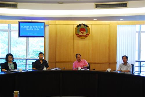 10月26日上午,区政协机关党支部在三楼常委会议室召开组织生活会,会议由支部书记王安柳同志主持。 区政协主席梁国章,副主席江佐中、郭祺、黄燕霞,专职常委何妙芬等副处级以上领导干部以普通党员身份参加组织生活会。五位副处级领导干部以践行“三严三实”为主题,对照党章等党内规章制度、党的纪律、国家法律、党的优良传统和工作惯例,对照正反两方面典型,联系个人思想、工作、生活和作风实际,联系个人成长进步经历,与支部成员一起交流发言。 会上,梁国章要求全体党员领导干部认真学习贯彻习近平总书记9月11日在中央政治局第二十六次集体学习时的重要讲话精神,以及8月14日以普通党员身份参加所在党支部组织生活会时的重要讲话精神。深刻领会习近平总书记关于“践行‘三严三实’,要立根固本,挺起精神脊梁;要落细落小,注重细节小事;要修枝剪叶,自觉改造提高;要从谏如流,自觉接受监督”、关于“一定要对党忠诚、知恩感恩报恩,一定要有责任、担当意识,一定要讲纪律、守规矩,一定要不断学习、上进”等要求,进一步提高把“三严三实”融入修身做人、用权律己和干事创业方方面面的思想自觉和行动自觉,以严和实的精神,扎扎实实把各项工作做好。