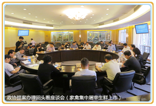 4月19日上午,区政协主席周文带队,就家禽集中屠宰、冷链配送、生鲜上市方面的提案开展回头看活动。活动通过实地视察顺德区家禽临时集中屠宰点、大良府又市场生鲜家禽零售点,听取承办单位区农业局、区市场监管局(食品药品监管局)关于提案办理情况汇报,政协委员提出完善提案办理工作意见建议等形式,进一步跟踪督办往年的提案办理。区政协副主席黄燕霞,秘书长陈仲贤、政协专职常委和提案委成员,区农业局局长何允唐,区市场监管局(食品药品监管局)副局长胡公会等参加了活动。
