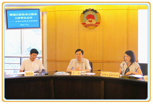 7月15日上午,区政协召开重点提案《关于加强社会服务发展规划的建议》主席督办会议。政协主席周文,提案委正副主任,提案人,提案承办单位主要负责同志等参加了会议。会议由政协副主席黄燕霞主持。 提案《关于加社会服务发展规划的建议》由黎玉婷委员、苏用和委员两份提案并案而成,由区民政和人力资源社会保障局主办,区委政协委(区司法局)会办。 提案人简要说明了撰写提案的初衷和提出提案办理的要求。他们认为,当前社会正处于快速转型过程中,越来越多的社会问题不断产生。面对发展中各种各样的问题,过去政府大包大揽、包办一切的运作方式已经不适合,传统的政治思想工作和群众工作也逐渐失灵。解决社会问题、化解社会矛盾,需要深入开展社会服务工作,这已经是势在必行。而对于我区而言,社会服务工作是一项新生事物,近5、6年前才开始正式探索和尝试,因此,不可避免地存在发展规划薄弱、服务呈碎片化、成效难以凸显、专业人才短缺等短板,为此建议加强我区社会服务的发展规划,完善制度化建设,实施规范化管理,探索建立服务质量标准体系,充分发挥社会服务为化解社会矛盾、促进社会和谐发展的重要作用。 承办单位汇报了提案办理的情况及今后的工作设想。据介绍,截止至今年上半年,我区持证社工人数达1992人,社工员111人,达到每万人拥有社会工作者7.9人,提前超额完成指标;社会服务机构达26家,实现十个镇街全覆盖,广泛进入15个社工服务领域;全区205个村(社区)已经设置137个社工服务站、41个社区残疾人康复站和工疗庇护工场。为了加强规划引领,前段时间,区民政和人力资源社会保障局已会同区社工委,编制出“十三五”社会服务建设规划,已报送有关部门提请区政府审批。 委员们对承办单位的工作表示肯定。同时,对办好提案进行了探讨交流。黎玉婷委员建议有关部门要充分结合市民的需求,做好镇街、社区服务规划;苏用和委员建议加强社会机构的筹资能力,拓宽资金渠道,提高社会服务专业化水平。林润江委员建议要进一步整合社会资源,保障社会机构的生存发展;梁锡开则认为社会服务要立足于社区,注重社工人才的培养,让社工牵手义工更好地开展社会服务;黄燕霞则认为政府要做好普惠性的社会服务,长期稳定投入,确保社会服务持续的发展,她还建议借鉴外国先进经验,引入公众监督模式,更公平、更透明的监管社会机构的运营。 周文同志对重点办理提出了要求。他认为,社会服务工作建设是一项全局性、系统性的工程,我区正处于起步发展阶段,还存在不少问题和挑战。《我区社会服务建设“十三五”规划》(下称《规划》)已进入审批阶段,有关部门要主动跟进《规划》的审批情况,确保其尽快出台实施;同时要求承办单位在《规划》出台前,充分吸纳提案的建议,多听政协委员的意见和社会各界的声音,确保《规划》的可操作性。他强调,这次的督办会议只是督办工作的一个开局,下一阶段,区政协将开展系列的督办活动,通过组织承办单位、提案人、界别委员等请到先进地区学习,到镇街基层、社会机构开展不同形式的调研,以期更广泛听取民意,为重点提案的办理落实搭好平台,发挥好政协解决民生实事的纽带作用。