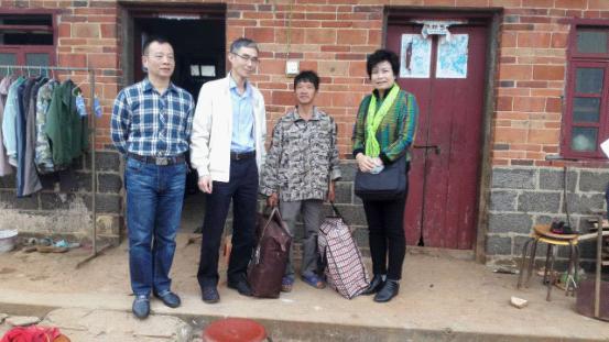 在贫困户吴耀(右二)家中,谭振东副主席(左二)了解其眼疾恢复情况,嘱咐其要遵照医生的要求定期检查,并送上慰问品和生产帮扶资金。右一为区政协专职常委何妙芬,左一为区政协专职常委蔡成辉。