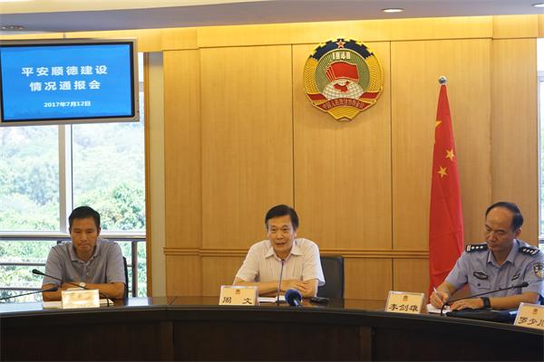 李剑雄围绕维护社会政治大局稳定全力做好维稳反恐处突、维护基层社会稳定全力做好村居换届有序选举;着力抓打击工作全面推进“飓风2017”专项行动、着力抓戒毒康复工作全面发动全民禁毒、着力抓社会治安防控工作全面织密路防网络、着力抓安全管理工作全面打造平安顺德品牌的“两个维护、四个着力”通报了顺德区公安局2017年上半年工作成效。
