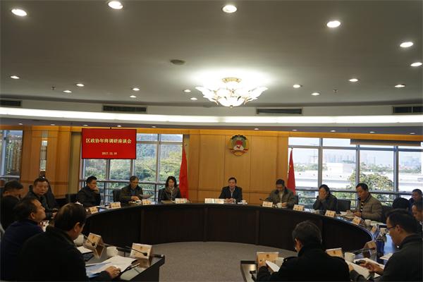 12月18-19日,区政协召开年终调研座谈会,区政协主席周文,副主席徐国元、黄燕霞、李梓文、谭振东,党组成员谭志亮,秘书长何鸿佳,专职常委何妙芬、钟景荣、郑军、蔡成辉、梁隽宁、林世龙、凌云,及各镇(街道)联络委员会负责人等参加了会议。