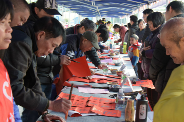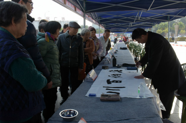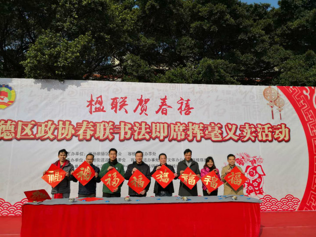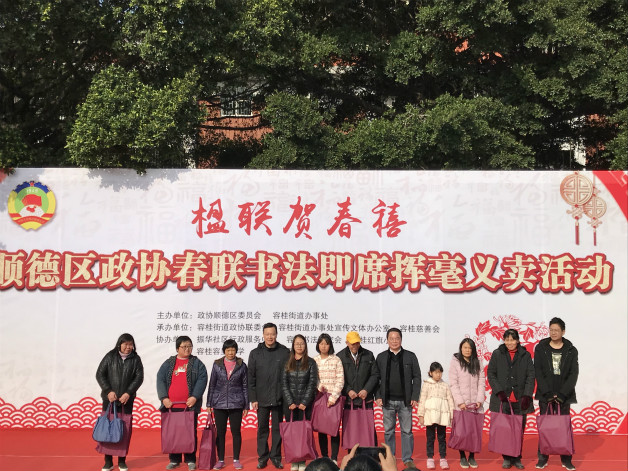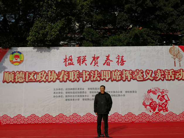 2月3日,由顺德区政协、容桂街道办联合举办的“楹联贺春禧——春联书法即席挥毫义卖活动”在容桂千禧广场举行。区政协主席周文,秘书长何鸿佳,专职常委、文教体卫委主任钟景荣等参加了活动。