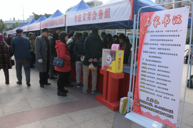 活动现场,书法家一字排开,专心致志地为市民们写字。除了有书法作品和春联义卖,现场还设置了爱心物品义卖摊位,不少义工热情地招呼市民前来摊位购买商品,为慈善事业做贡献。据统计,活动共筹得款物总值35060.6元,全部善款将捐入容桂慈善会,用于容桂慈善事业。