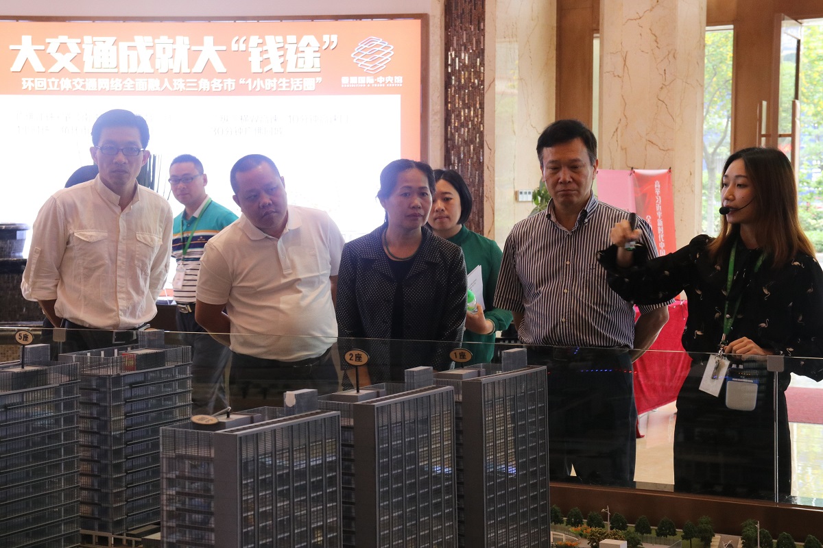 长洲区政协主席左胜娴(中)考察亚洲国际家具材料中心,顺德区政协主席周文(右2)陪同