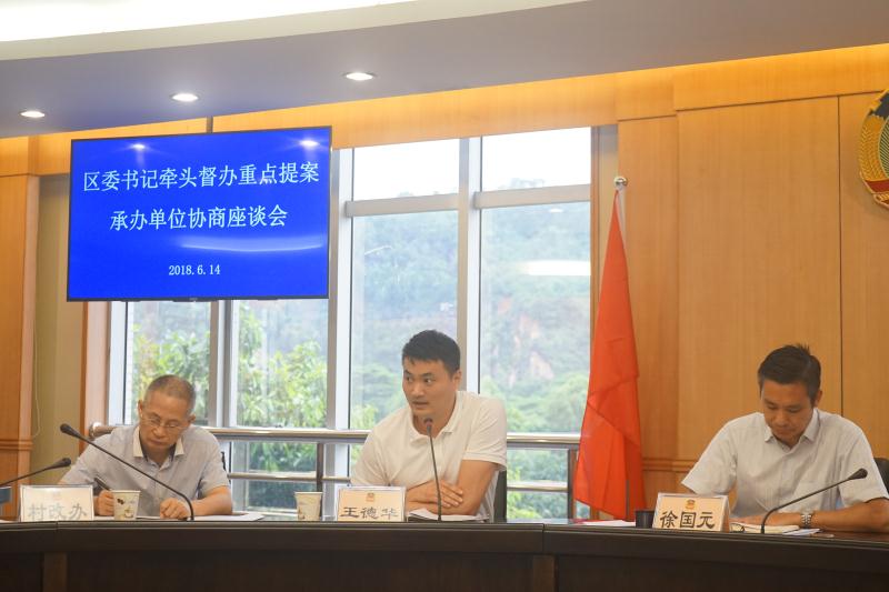 | 6月14日、15日,区政协分别召开了区委书记、区长牵头督办重点提案承办单位协商座谈会。区政协副主席徐国元、提案委主任凌云,区政府办副主任王德华、张培发和提案承办单位负责同志等参加了会议。