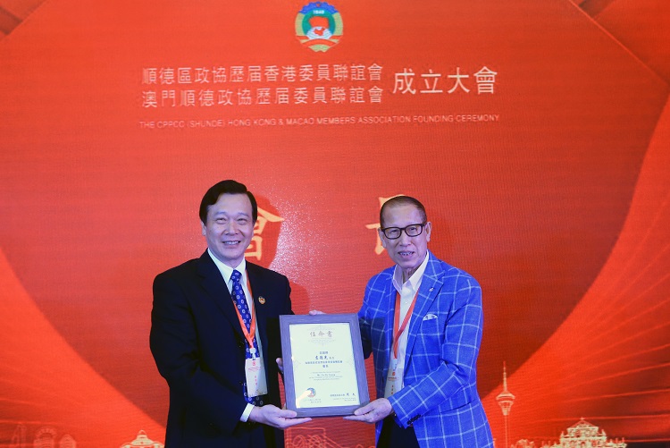 周文为卢德光颁发顺德区政协历届香港委员联谊会会长任命书
