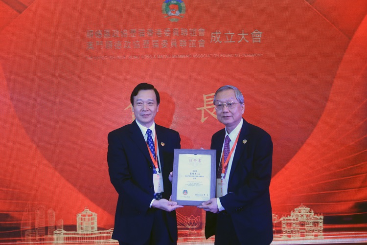 周文为叶绍文颁发澳门顺德政协历届委员联谊会会长任命书