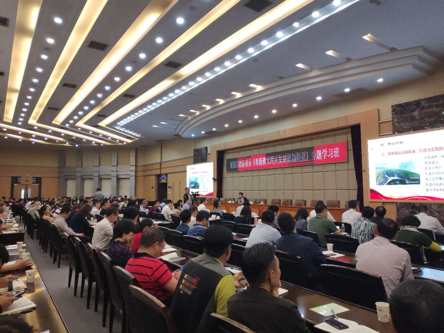 解读大湾区规划纲要,详解高质量发展路径,今日顺德区政协召开政协委员专题学习班,佛山市发展改革局副局长朱小建,佛山市委党校副校长、教授蒙荫莉分别作了《抢抓机遇,勇担使命,全力推进粤港澳大湾区建设》和《顺德建成全省高质量发展实验区要着力做好的几篇大文章》专题讲座。区政协主席周文主持了学习班。区政协委员、民主党派专干、政协各专联委会联络员等200多人参加了学习。