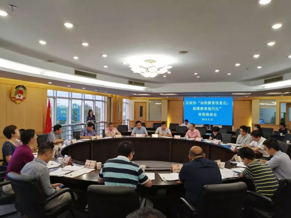 27日,顺德区政协组织区教育局、区财政局、区政务服务数据管理局、相关学校负责人等召开“加快教育信息化 助推教育现代化”协商座谈会,区政协主席周文表示,要加快形成合力,统筹资源强化顶层设计,助推顺德教育信息化建设,实现智慧教育。