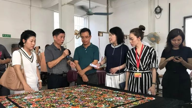 在广秀庄,企业负责人郑先生非常热情地带领政协委员们参观了工作坊间,并娓娓道来广绣的发展历史以及介绍企业的经营状况。委员们不时驻足细看,向工作人员了解询问广绣的各种工艺,啧啧称赞广绣变化万千、魅力无穷,是顺德传统文化中的珍贵遗存,应该加大宣传推广,擦亮顺德文化品牌。