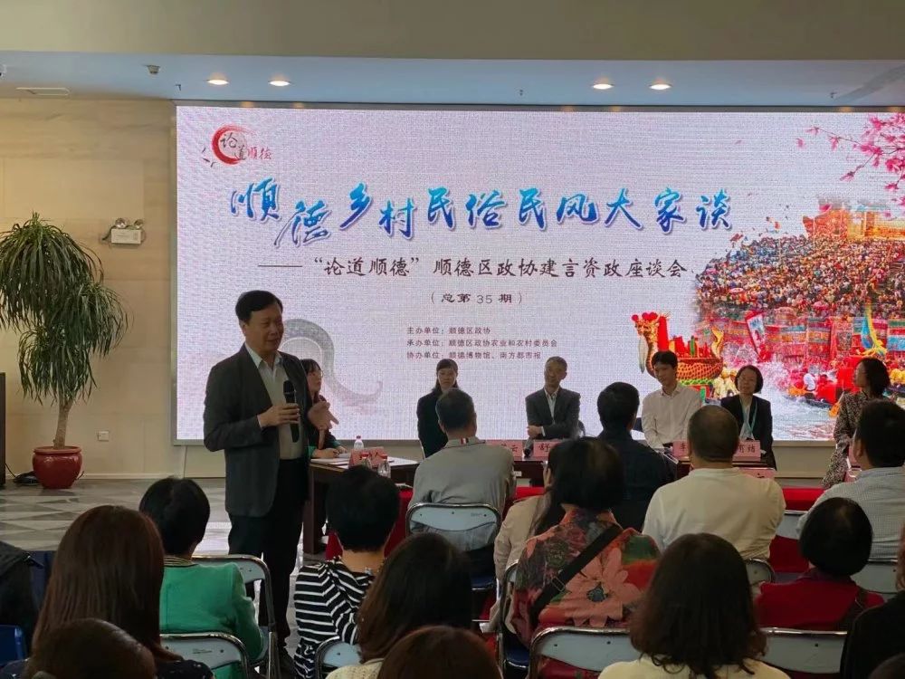 11月21日,顺德区政协建言资政座谈会在顺德博物馆举行,政协委员与专家学者们就乡村民俗民风如何传承的话题展开讨论。与会者们都认为乡村民俗要焕发活力,必须要与当代都市人的生活找准结合点,从而让市民从民俗活动中汲取顺德传统文化的精神力量。