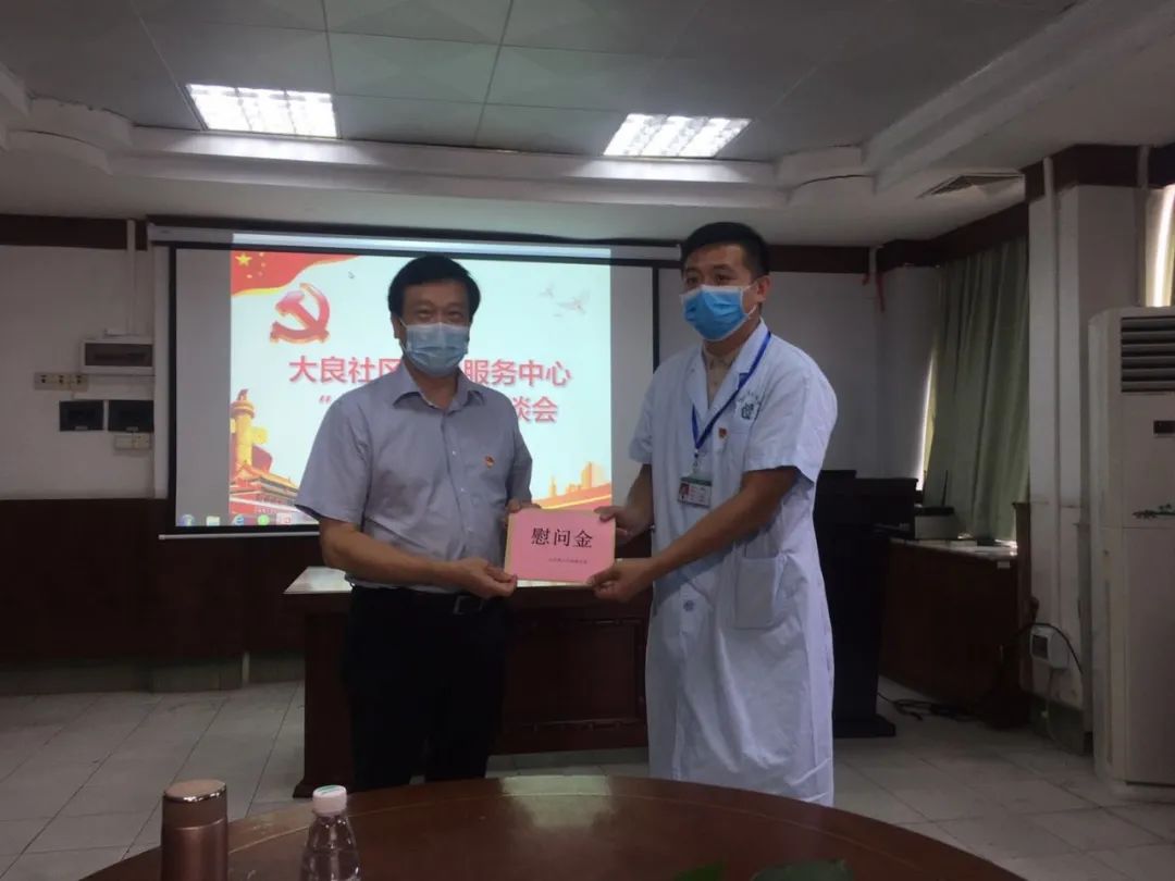 随后,周文到大良社区卫生服务中心开展慰问和座谈,感谢医护人员在战“疫”期间的无私奉献。大良社区卫生服务中心张龙医生是一名党员医生,春节期间他第一个报名支援发热门诊,还主动申请值夜班。周文对张龙致以节日的问候和衷心的感谢,并为张龙送上慰问金。