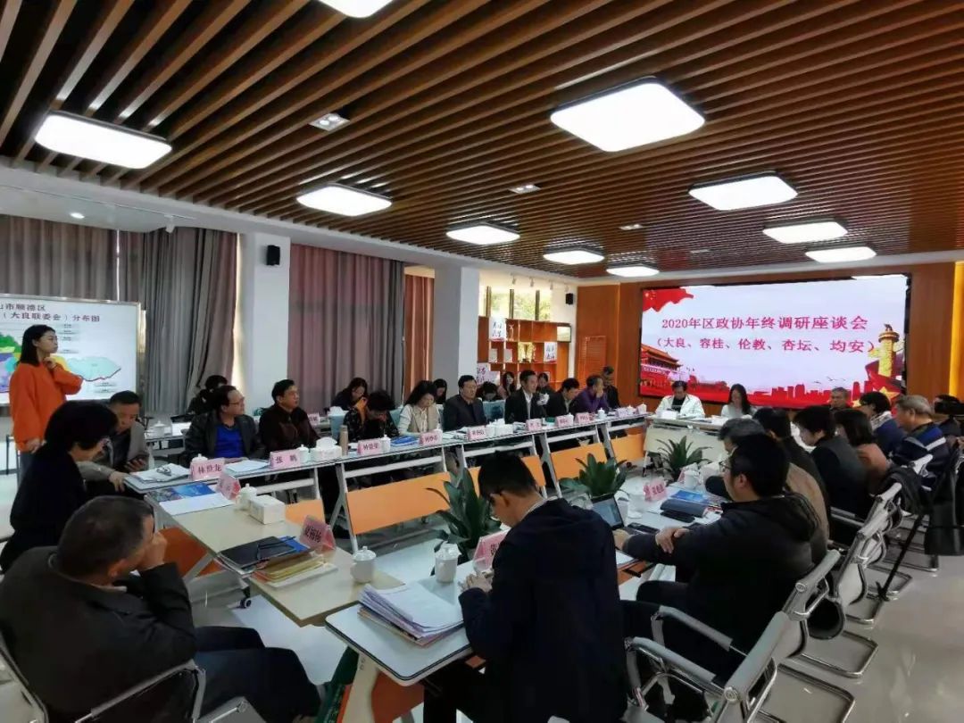 12月24日上午,区政协继续开展年终调研活动,在大良街道党群服务中心会议室召开座谈会。大良街道、容桂街道、伦教街道、杏坛镇和均安镇联委会,汇报了联委会2020年工作总结和2021年工作思路,以及对区政协工作的意见和建议,并围绕镇街经济社会发展、联委会工作、村改工作和委员开展民主监督活动等情况进行互动交流。区政协主席周文,副主席徐国元、黄燕霞、李梓文,区政协秘书长、专职常委等参加了座谈。