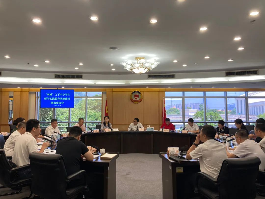 9月14日上午,顺德区政协副主席李建丽主持召开“双减”之下中小学生研学实践教育基地建设协商座谈会。区政协主席冼阳福、区人民政府副区长柯宇威出席座谈会。